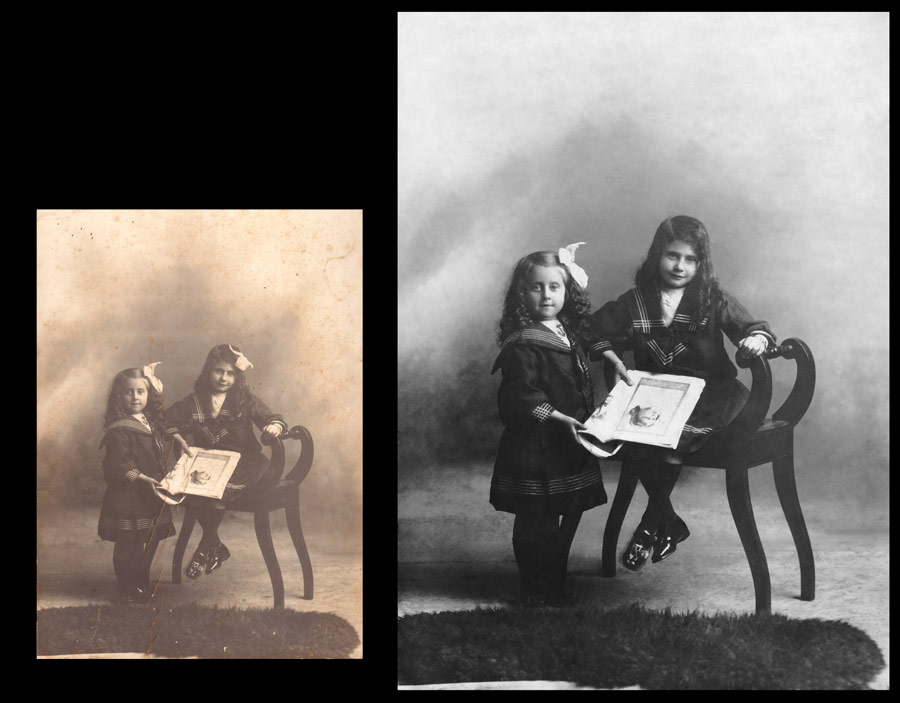 Photographs become our memories and they document history. Bevel Edge can take your lovely old photo, cracked and faded by the years and restore it close to it’s original beauty.